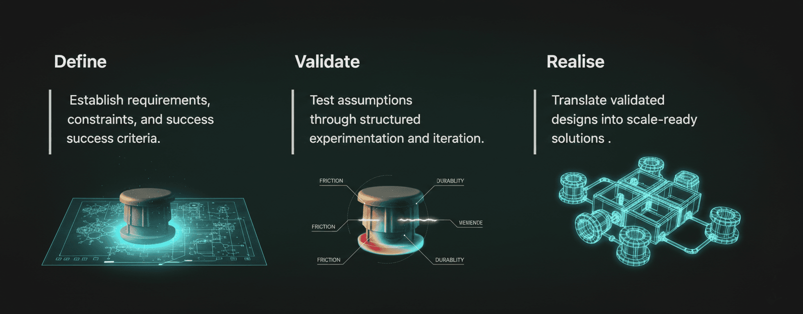Our process is designed to reduce uncertainty early — aligning engineering intent, performance, and feasibility before scale.